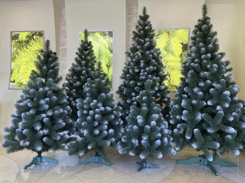 - Оригінальні варіанти, як-от білі ялинки, засніжені ялинки або моделі з інтегрованим декором.