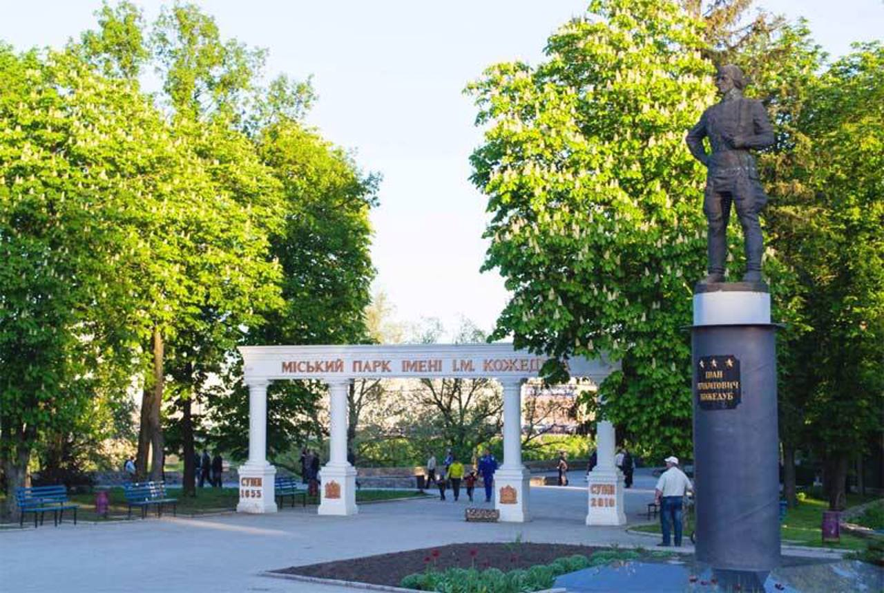 Парк імені І. М. Кожедуба – це великий міський парк у Сумах, який є популярним місцем для прогулянок та відпочинку. Тут можна насолодитися свіжим повітрям та погодувати білочок. Цей парк у Сумах є міським закладом культури, улюбленим місцем відпочинку місцевих жителів та гостей міста. Він налічує понад 30 видів зелених насаджень.