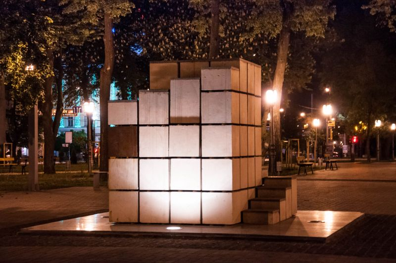 Пам’ятник являє собою величезний куб цукру-рафінаду, з якого нібито вийняли кілька шматочків. Для тих, хто бажає зробити фотографію на пам’ять, передбачена можливість піднятися на куб по кам’яних кубиках. Ця незвичайна пам’ятка не лише відображає історію міста, але і є чудовим місцем для фотосесій та прогулянок у сквері «Покровському».